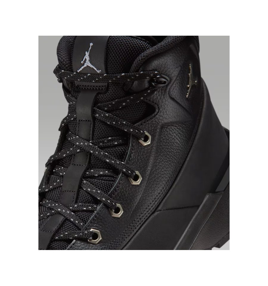 Ботинки Jordan City «Black», изготовленные из гладкого нубука и контрастной тисненой кожи, созданы для того, чтобы быть прочными и удобными для любых зимних приключений. Дышащая сетка на язычке и манжете обеспечивает дополнительную вентиляцию, а светоотражающие шнурки в крапинку и шестиугольные металлические люверсы добавляют функциональности.