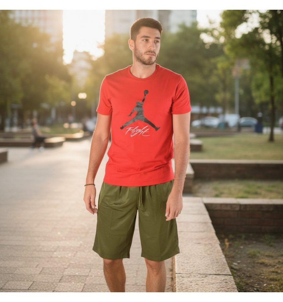 Красная Футболка Jordan Flight Cement из 100% хлопка от бренда Jordan. Модель прямого кроя с круглым горловым вырезом дополнена крупным принтом брендинга.