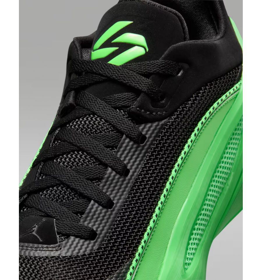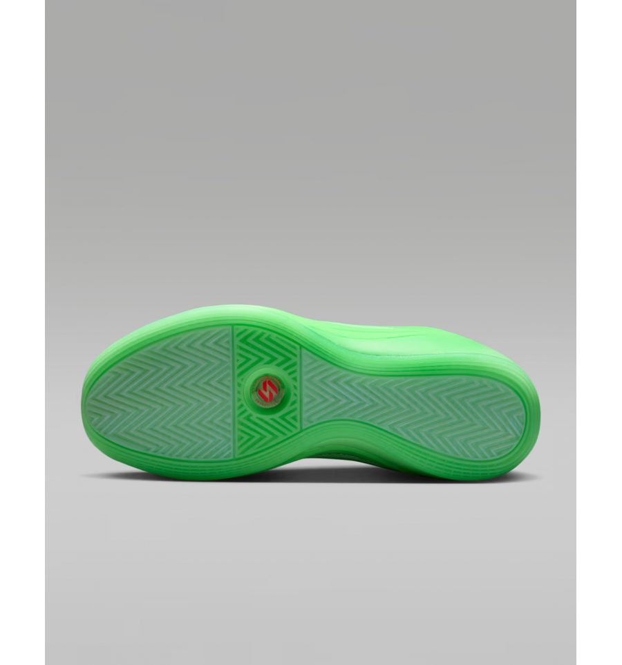 Jordan Luka 5 Venom оснащена полноразмерным блоком Zoom Strobel для амортизации и возврата энергии, а также системой ISOband для надежной фиксации стопы при резких шагах в сторону (step-backs)
