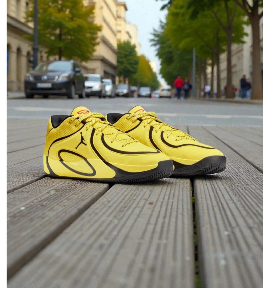 Jordan Tatum 4 Yellow - это переосмысление дизайна 1989 года, которое сочетает в себе культовый внешний вид с современным комфортом и технологиями, такими как амортизация Max Air и резиновая подошва для сцепления.
