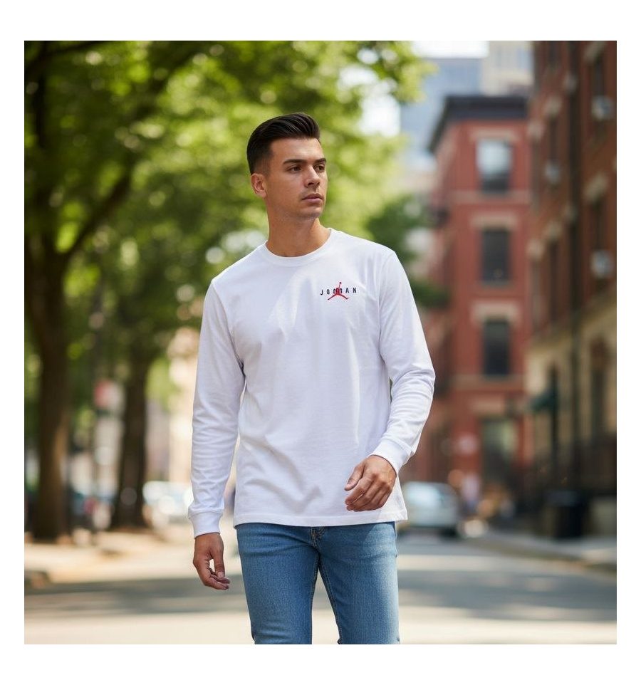 Лонгслив Jordan JSW (Jordan Sportswear) Jumpman Air — это повседневная футболка с длинными рукавами, которая сочетает мягкий хлопковый материал с культовым спортивным дизайном Jordan.