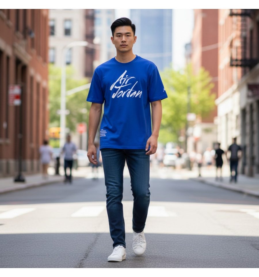 Синя Футболка Jordan JSW Greatest Air Jordan зі 100% бавовни від бренду Jordan. Модель прямого крою із круглим горловим вирізом доповнена принтом бренду.