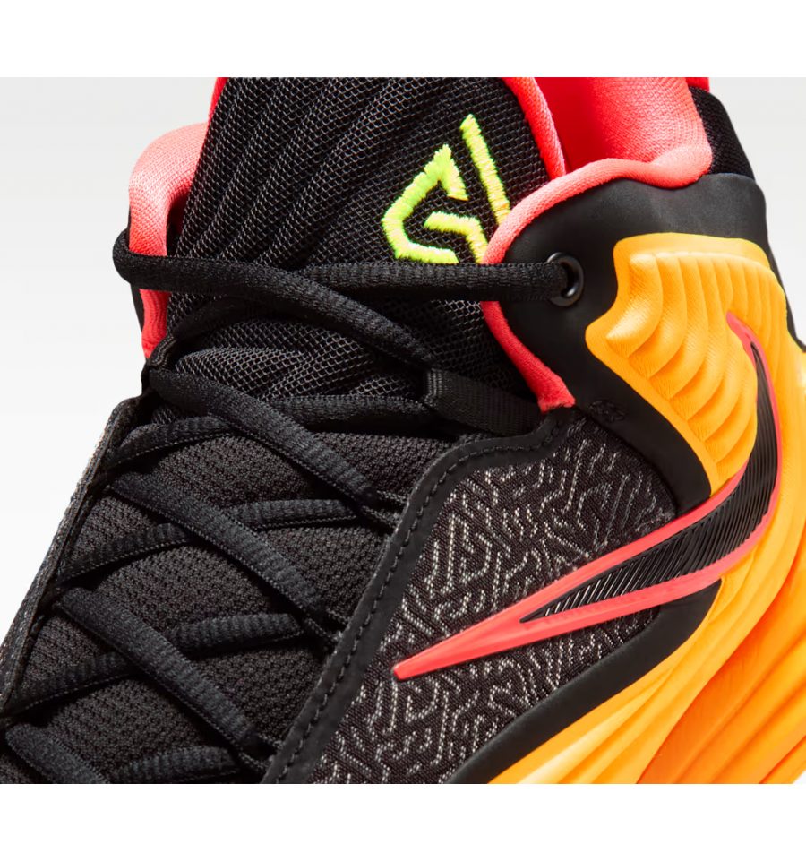 Nike Giannis Freak 7 "Laser Orange" оснащені повнорозмірною проміжною підошвою Cushlon 3.0. Підмітка розроблена для покращення зчеплення та посилення контролю на майданчику. Її скульптурні канавки у вигляді напису «ANTETOKOUNMPO» дозволяють згинатися, забезпечуючи плавний рух під час швидких ривків. Дизайн бічної підтримки натхненний грецькими сандалями, що надсилає нас до спадщини Янніса.