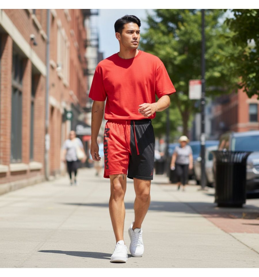 Шорти Jordan Dri-FIT Sport BC Mesh Graphic чорно-червоні - це легка та дихаюча модель з яскравою графікою, розроблена для баскетболу, тренувань або повсякденного комфорту. Вони поєднують вологовідвідну технологію з класичним спортивним стилем.